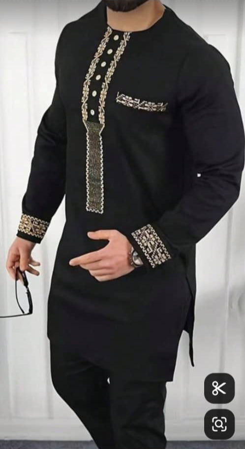 Experience the perfect blend of style and culture with our complete Men traditional outfit Crafted from high-quality fabric, this traditional outfit showcases a unique pattern that adds a touch of elegance to any outfit. Elevate your fashion game with this statement piece that combines traditional African design with modern fashion trends.
